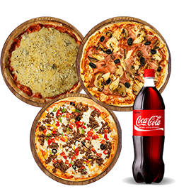 3 Pizzas Senior au choix + 1 Boisson 1.5l au choix.